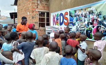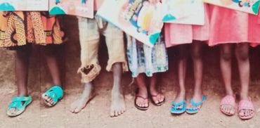 Elizabeth in Uganda runs to a volunteer with her book, ready to learn only to find it is not the right day and sadly walks away.
